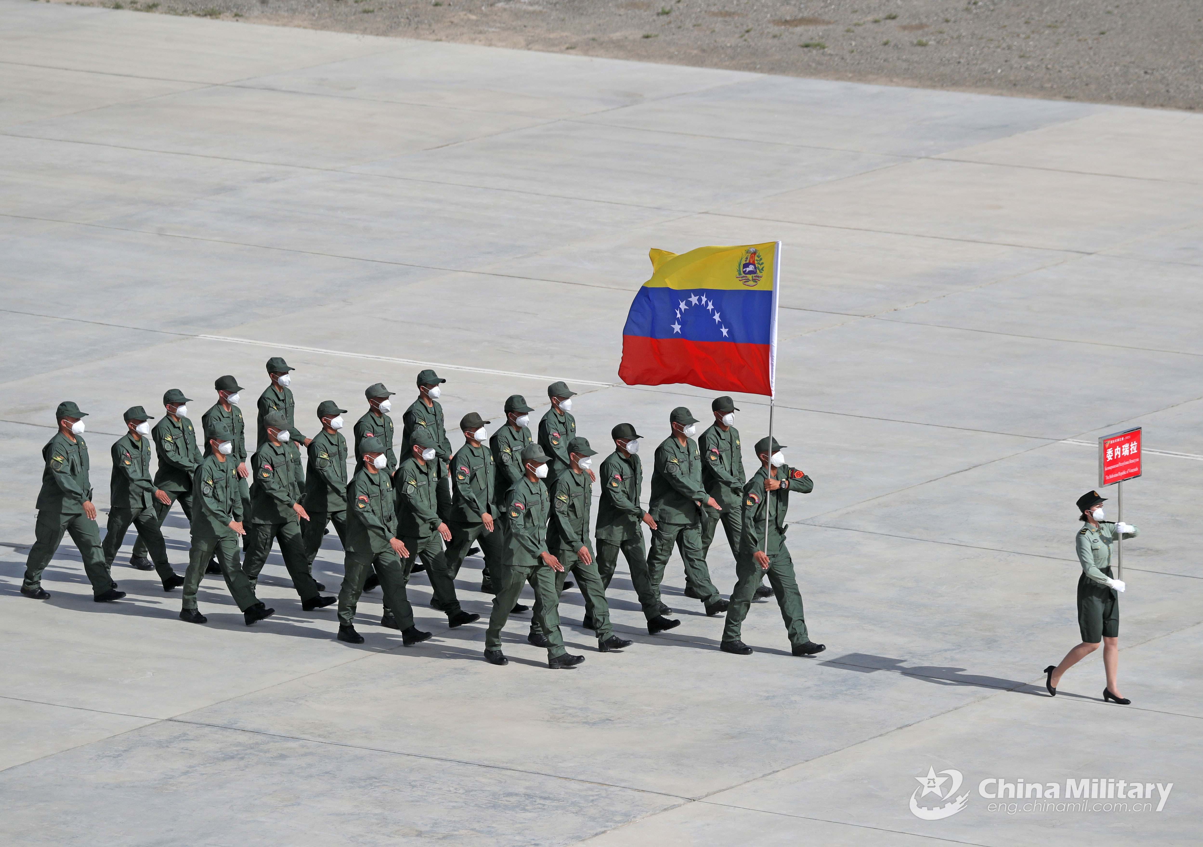 The opening ceremony of three competitions of the International Army Games (IAG) 2021 is held at the "Suvorov Attack" competition venue in Korla, northwest China's Xinjiang Uygur Autonomous Region, on August 22, 2021. The picture shows the Venezuelan participating troops march past the reviewing stand at the ceremony. (Photo by Luo Xingcang)