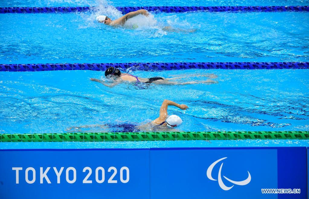 Chinese athletes attend a training session at the Tokyo Aquatics Centre in Tokyo, Japan, Aug. 23, 2021. (Xinhua/Hu Huhu)