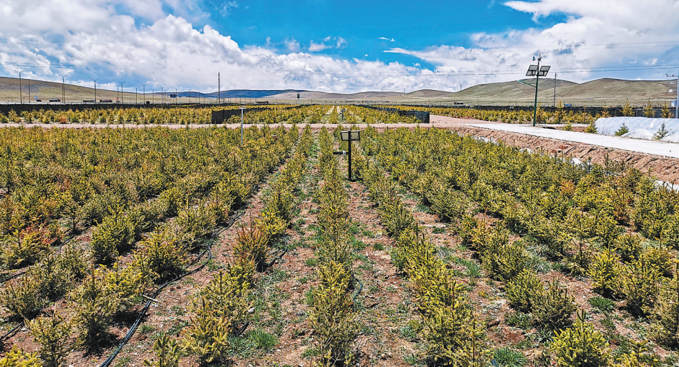 Photo taken in June 2019 shows dragon spruces planted in a nursery garden under a key technology development program of urban afforestation in Nagqu. (Photo by Hao Wei)