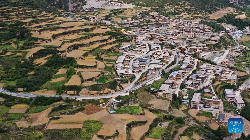 Aerial photo taken on Aug. 28, 2021 shows the scenery at Zhagana scenic area in Diebu County of Gannan Tibetan Autonomous Prefecture, northwest China's Gansu Province. (Xinhua/Du Zheyu)