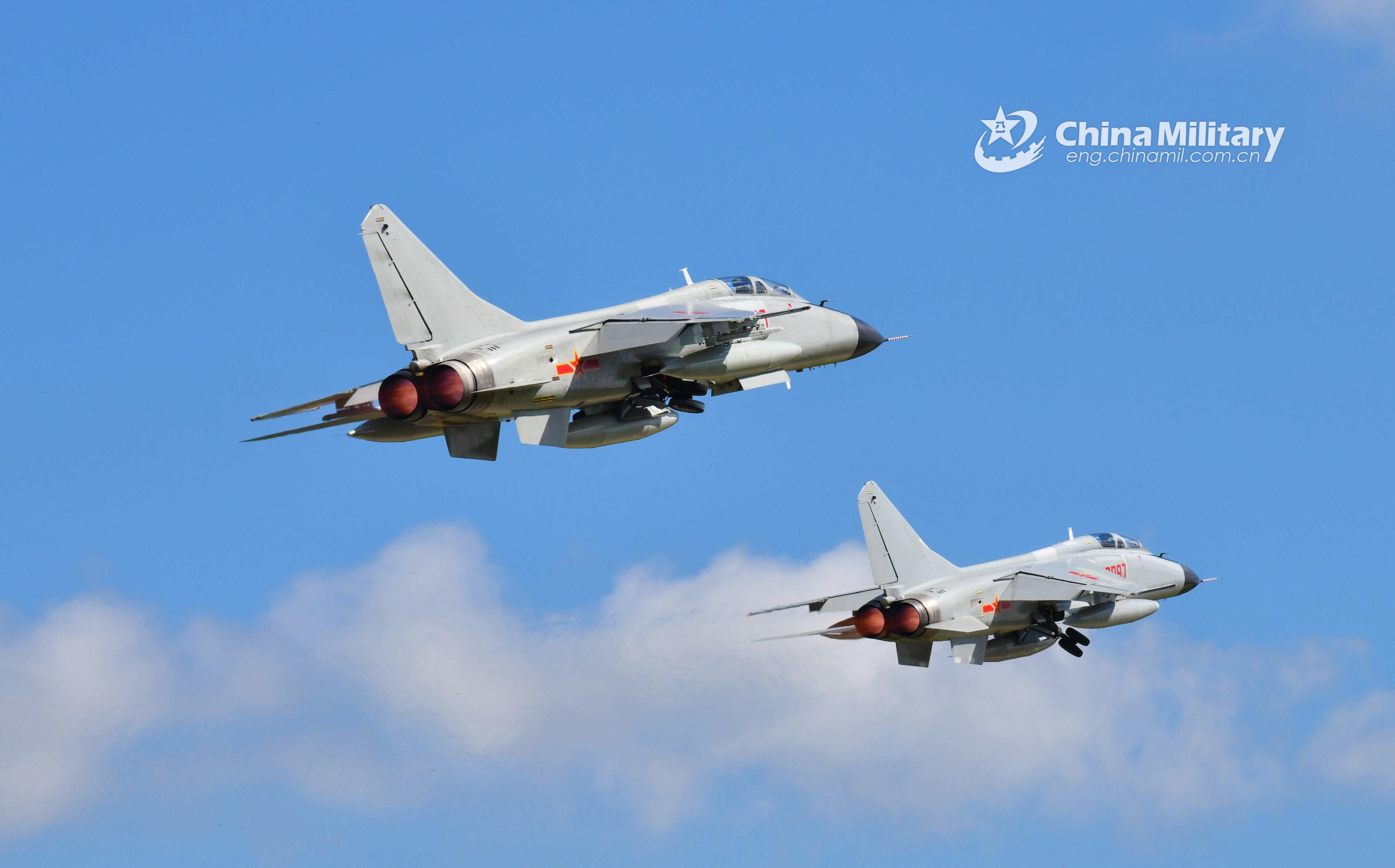 Fighter jets attached to a naval aviation brigade under the PLA Southern Theater Command take off in formation for a round-the-clock flight training exercise on August17, 2021. (eng.chinamil.com.cn/Photo by Zhuo Lingpeng)