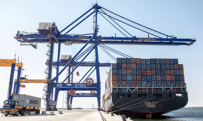 Containers are seen on a vessel at the new container terminal in Walvis Bay, Namibia. (Photo: Xinhua)