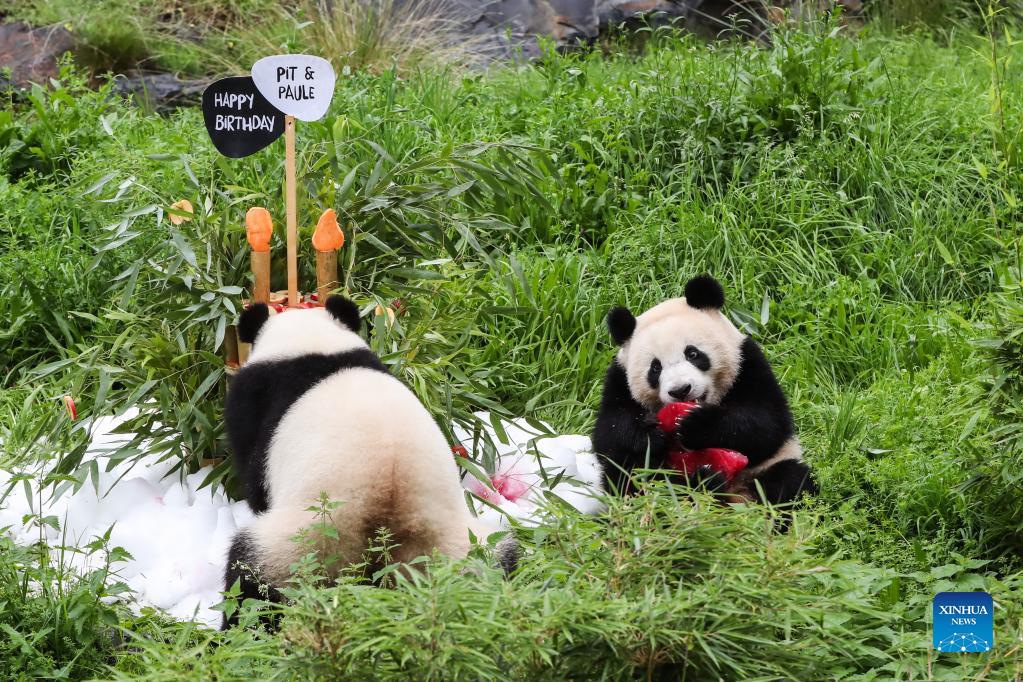 - Eighth birthday for pair of giant pandas celebrated in Haikou, Hainan province