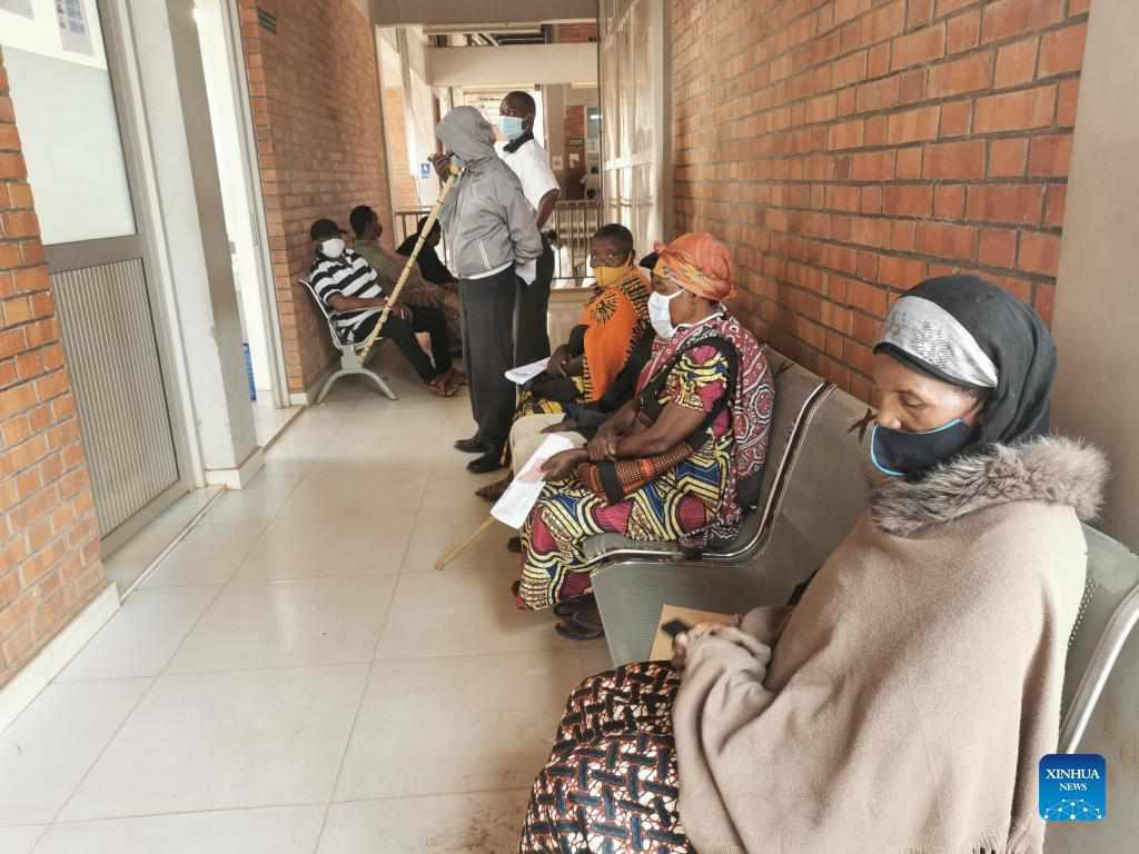 Patients wait outside consulting rooms at Masaka Hospital in Kigali, Rwanda, on Aug. 31, 2021. Chinese medical doctors' presence in Masaka Hospital, Masaka Sector in the city suburbs of Kigali is transforming the healthcare services in Rwanda by providing specialized medical care to Rwandan patients. (Xinhua/Ji Li)