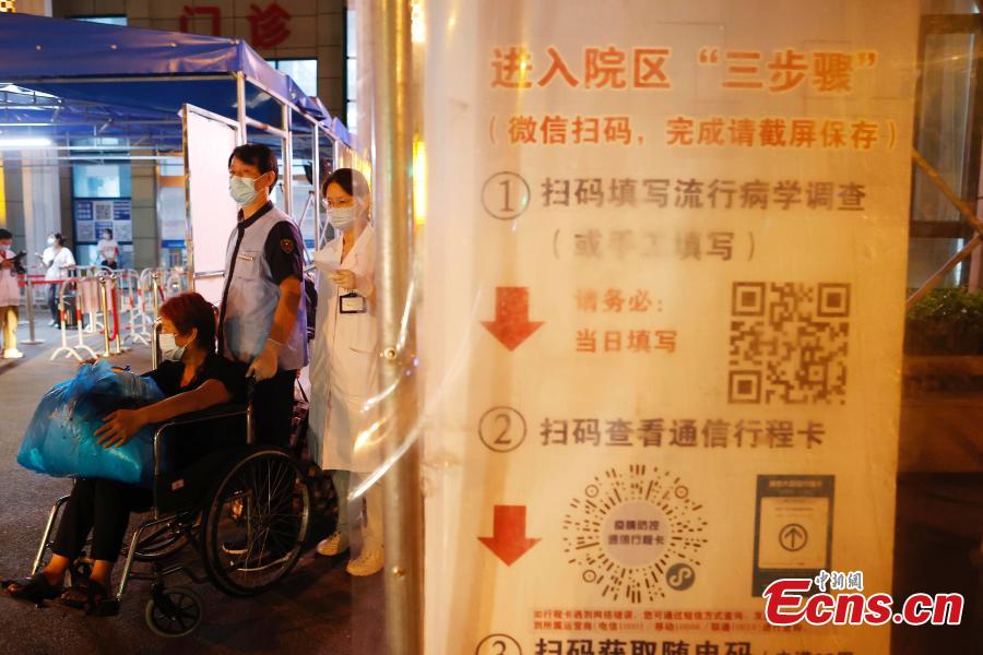Patients leave the Shanghai Songjiang District Central Hospital by taxis, Sept. 1, 2021. (Photo/Yin Liqin)
