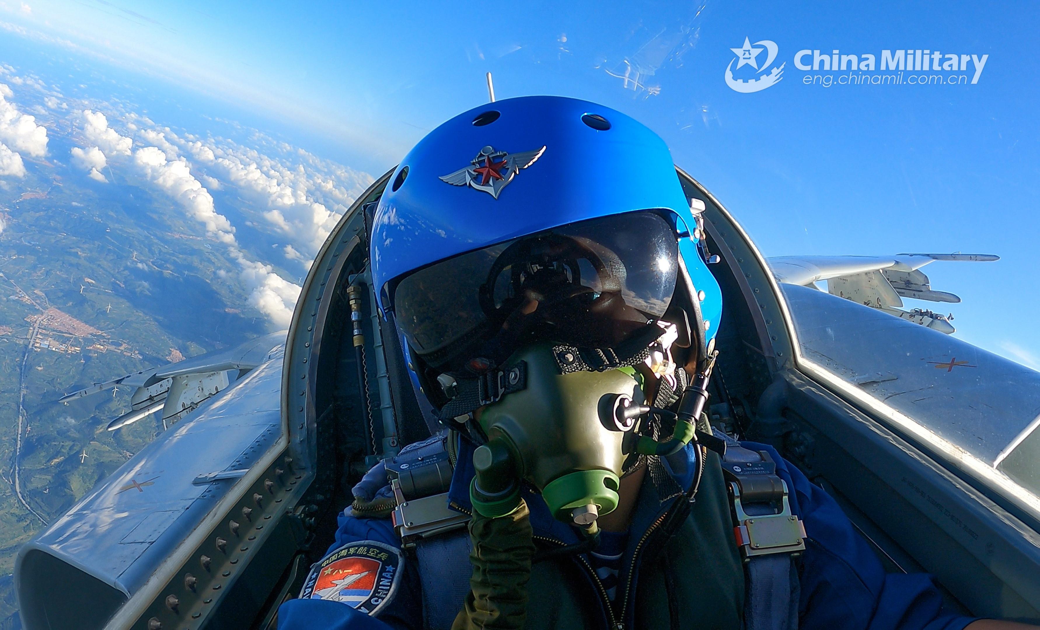 A pilot assigned to a naval aviation brigade under the PLA Northern Theater Command operates a fighter bomber to lock the mock target during a recent round-the-clock flight training exercise. (eng.chinamil.com.cn/Photo by Yu Zhengqing and Zhang Qiang)