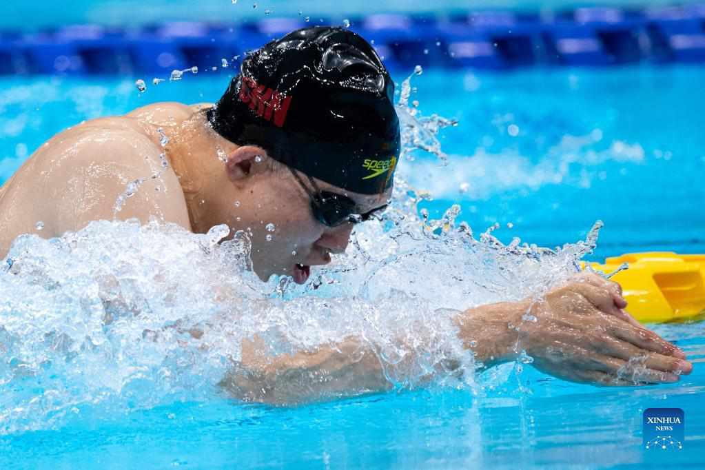 Yang Bozun of China competes during the men's 100m breaststroke SB11 final of swimming event at the Tokyo 2020 Paralympic Games in Tokyo, Japan, Sept. 1, 2021. (Xinhua/Cheong Kam Ka)