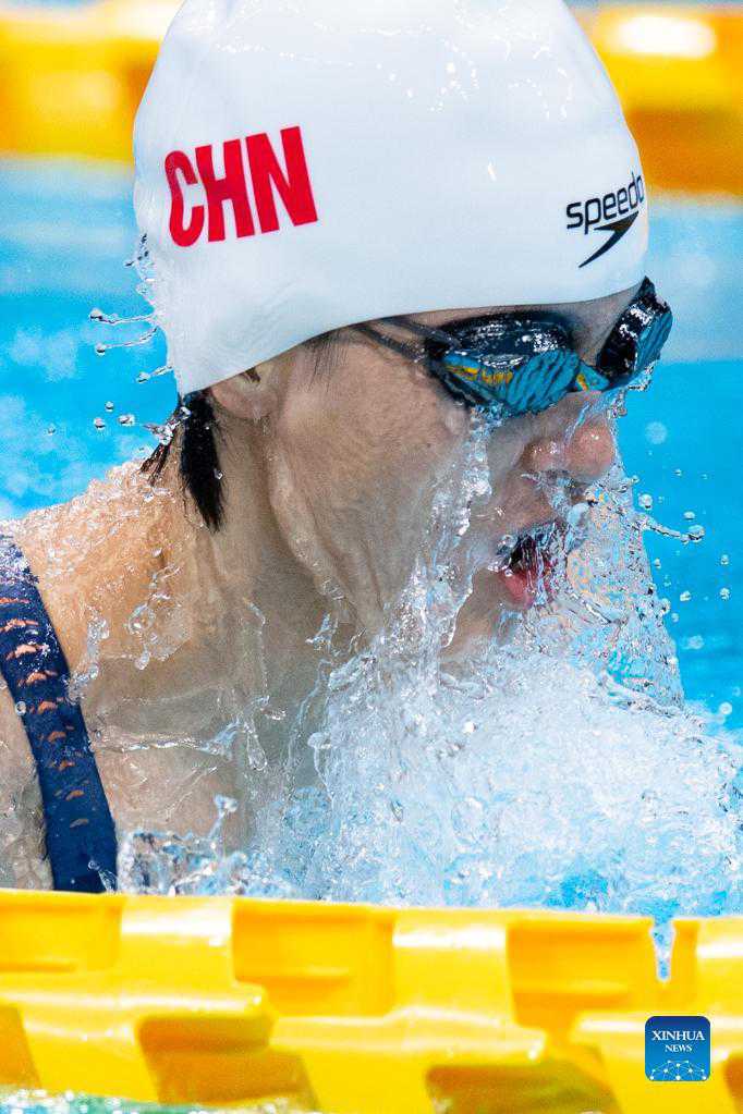 Ma Jia of China competes during the women's 100m breaststroke SB11 final of swimming event at the Tokyo 2020 Paralympic Games in Tokyo, Japan, Sept. 1, 2021. (Xinhua/Cheong Kam Ka)