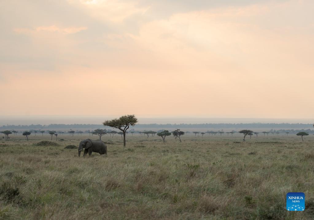 Photo taken on Aug. 30, 2021 shows an elephant at Maasai Mara National Reserve in southwestern Kenya. Kenya has released the results of a three-month wildlife census that reveal a slight increase in the population of iconic large herbivores including elephants and rhinos (Xinhua/Long Lei)