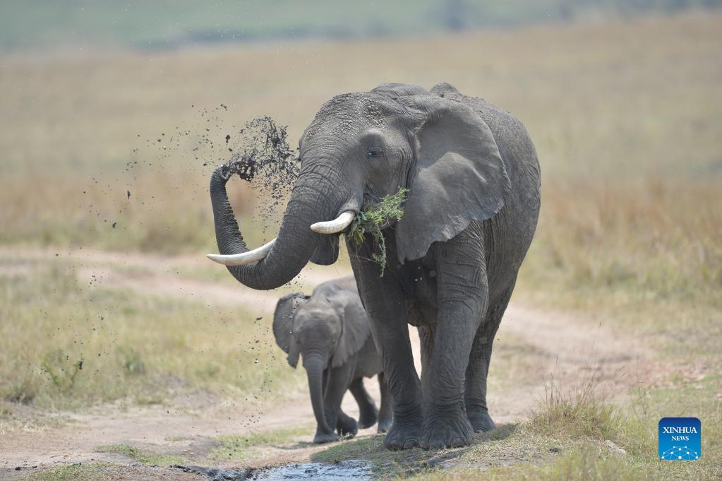 Photo taken on Aug. 31, 2021 shows elephants at Maasai Mara National Reserve in southwestern Kenya. Kenya has released the results of a three-month wildlife census that reveal a slight increase in the population of iconic large herbivores including elephants and rhinos. (Xinhua/Dong Jianghui)