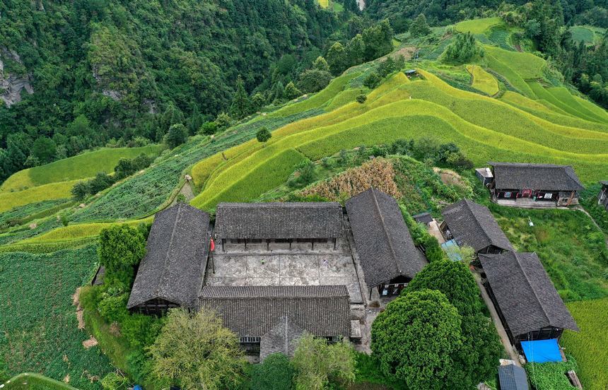 Aerial photo taken on Sept. 1, 2021, shows the teaching center in Danggan village, Paidiao town, Danzhai county in southwest China's Guizhou Province. (Photo/People's Daily Online)