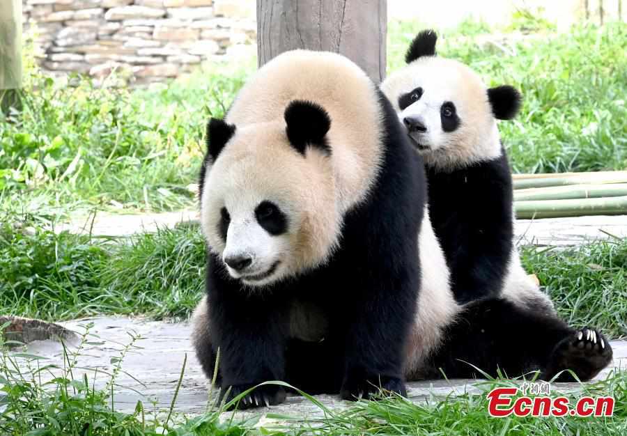 Giant pandas have fun during the early autumn at the Shenshuping Base of China Conservation and Research Center for Giant Panda, Southwest China's Sichuan Province, Sept. 3, 2021. (Photo: China News Service/An Yuan)