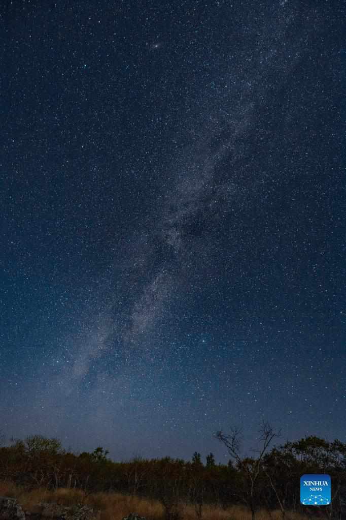 Long-time exposure photo taken on Sept. 1, 2021 shows the starry sky over the Wudalianchi Geopark in Heihe, northeast China's Heilongjiang Province. The Wudalianchi Geopark is famed for its volcanoes and hot springs. It has 14 volcanoes and five major volcanic barrier lakes. (Xinhua/Xie Jianfei)