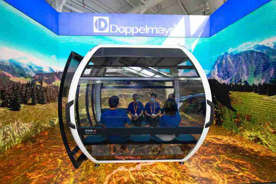 Photo taken on Sept. 3, 2021 shows a 3D cable car developed by Doppelmayr during the 2021 China International Fair for Trade in Services (CIFTIS) in Beijing, capital of China. (Xinhua/Chen Zhonghao)