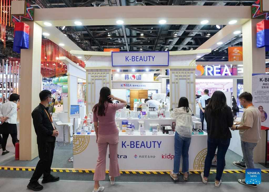 Visitors tour the South Korea exhibition hall during the 2021 China International Fair for Trade in Services (CIFTIS) in Beijing, capital of China, Sept. 5, 2021. (Xinhua/Wang Tiancong)
