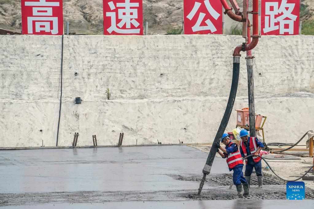 Construction workers are busy at the construction site of Nanquan section of Taihu tunnel, part of the Changzhou-Wuxi Highway, in Wuxi, east China's Jiangsu Province, Sept. 5, 2021. The main construction of the Nanquan section of the Taihu tunnel was completed on Sunday. Taihu tunnel, China's longest underwater highway tunnel, is part of the Changzhou-Wuxi Highway which has a total length of 43.9 km. The 10.8-km-long, 43.6-meter-wide tunnel is under Taihu Lake, China's third-largest freshwater lake. (Xinhua/Li Bo)