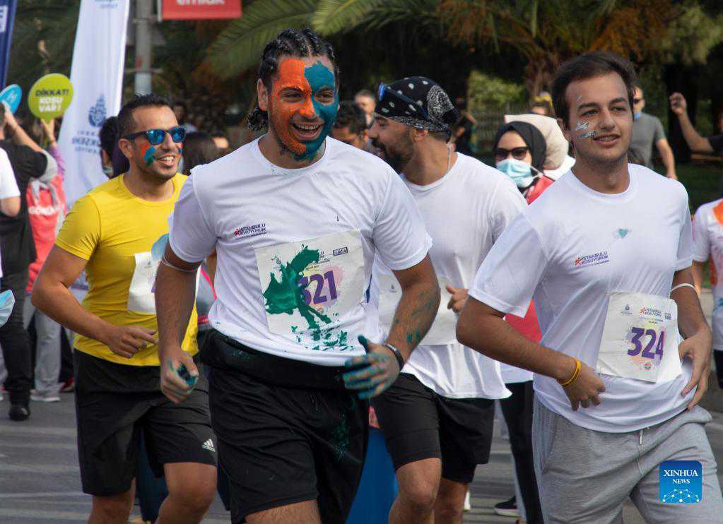 Runners take part in the Color Run in Istanbul, Turkey, on Sept. 5, 2021. Color Run, one of the most colorful sports events in Turkey's biggest city Istanbul, was held on Sunday with the participation of 1,250 runners. (Photo by Osman Orsal/Xinhua)