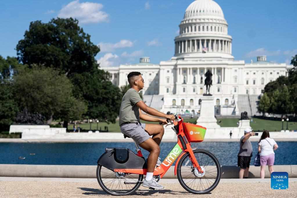 People are seen near the Capitol building in Washington, D.C., the United States, on Sept. 6, 2021. The total number of COVID-19 cases in the United States topped 40 million on Monday, according to data from the Johns Hopkins University. (Xinhua/Liu Jie)