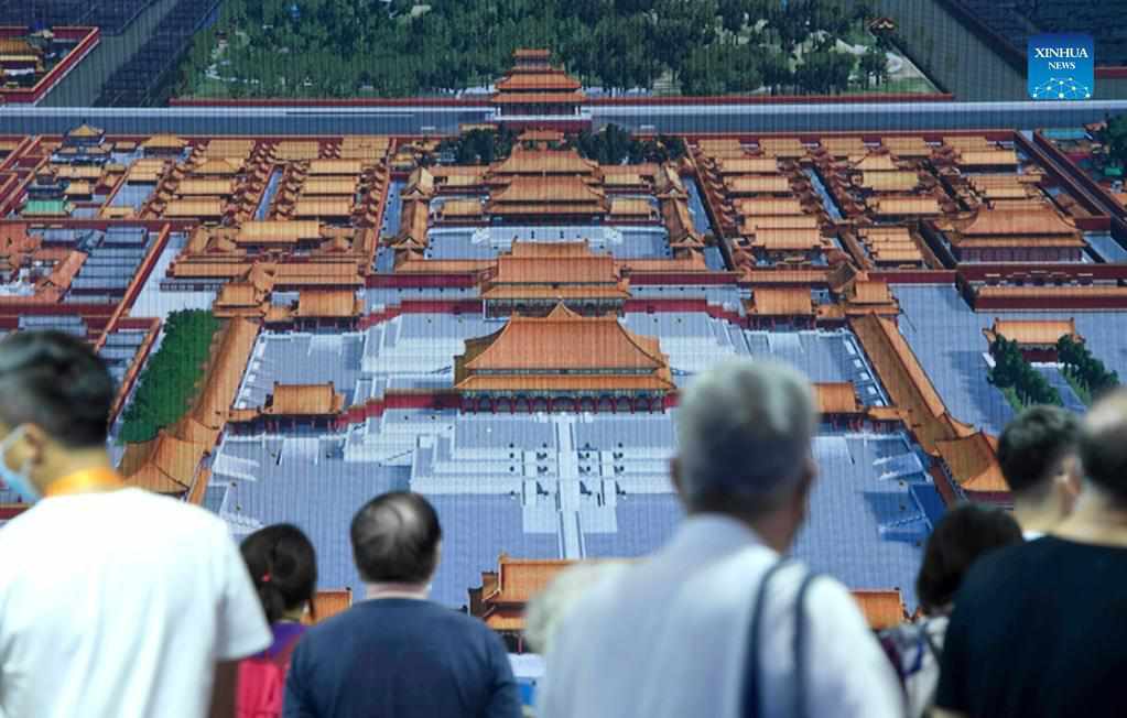 Visitors watch HD film about the Palace Museum during the 2021 China International Fair for Trade in Services (CIFTIS) in Beijing, capital of China, on Sept. 7, 2021. The six-day 2021 China International Fair for Trade in Services (CIFTIS) is coming to a close on Tuesday, with businesses wrapping up their exhibitions of products and services offline and online, and industry leaders finalizing their thematic conferences. (Xinhua/Wu Wei)