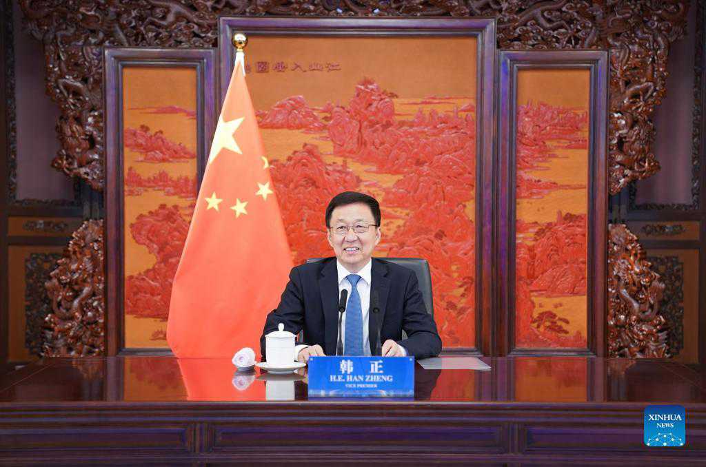 Stressing solidarity in the face of climate change, Han, also a member of the Standing Committee of the Political Bureau of the Communist Party of China Central Committee, said it is hoped that COP26 will send a strong political signal to firmly uphold multilateralism, respect multilateral rules, and promote actions; actively call for all parties to transform climate goals into specific policies and actions; and complete the negotiations on the implementation details of the Paris Agreement to ensure that global climate governance continues on the right track.