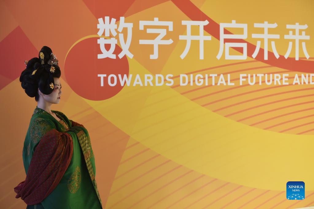 A guest presents traditional costumes at the China International Fair for Trade in Services (CIFTIS) in Beijing, capital of China, Sept. 4, 2021. (Xinhua/Lu Peng)