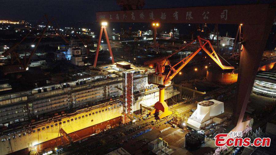 This aerial photo taken on Sept. 7, 2021 shows China's first domestically built large cruise ship. (Photo/China News Service)