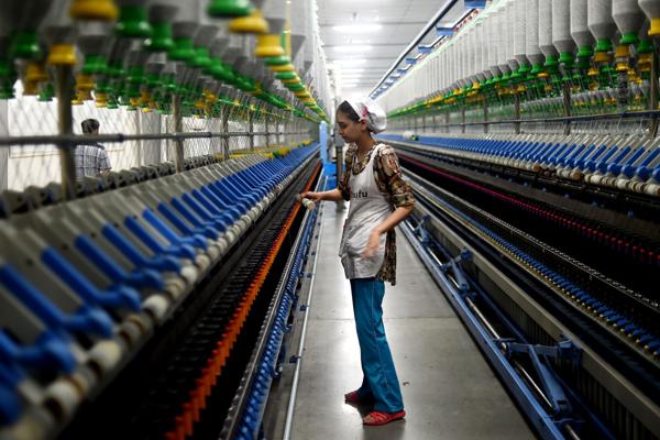 An employee of Huafu Top Dyed Melange Yarn works at the company's plant in Aksu, Xinjiang Uygur Autonomous Region. (Photo/Xinhua)
