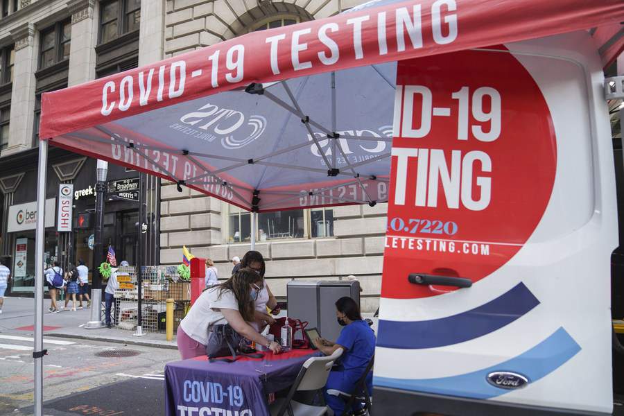 People register for COVID-19 test at a mobile testing site in New York, the United States, Sept. 6, 2021.(Xinhua/Wang Ying)