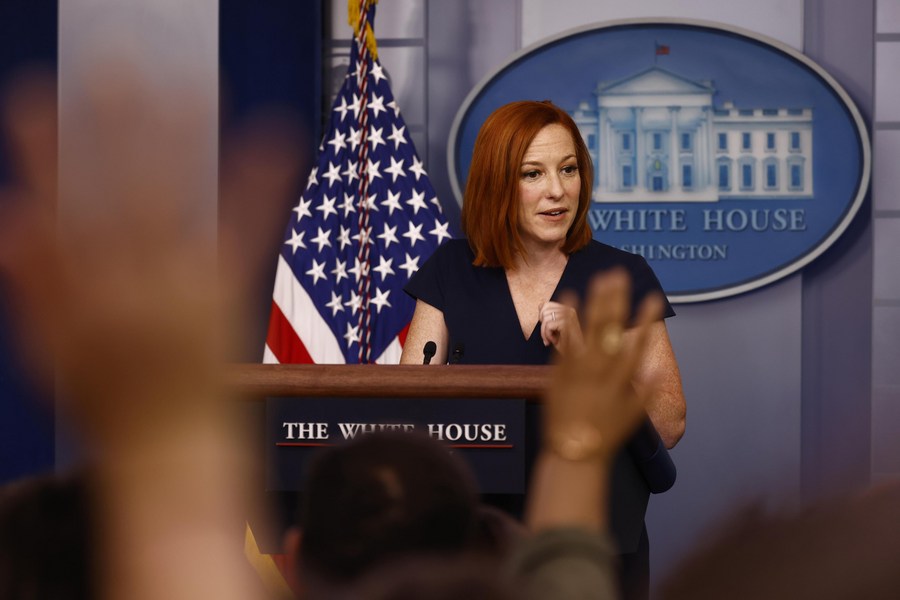 White House Press Secretary Jen Psaki speaks during a press briefing at the White House in Washington, D.C., the United States, on June 8, 2021. (Photo by Ting Shen/Xinhua)
