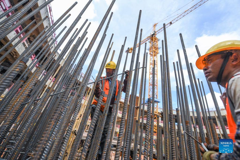 Workers operate at the construction site for a comprehensive traffic hub in Qianhai, Shenzhen City, south China's Guangdong Province, on Sept. 8, 2021. China's central authorities have issued a new plan for further developing a cooperation zone for the southern metropolis of Shenzhen and the Hong Kong Special Administrative Region (HKSAR). According to the plan, the reform and opening up of the Qianhai Shenzhen-Hong Kong Modern Service Industry Cooperation Zone will be comprehensively deepened. The plan, issued by the Communist Party of China Central Committee and the State Council, was made public on Monday. The general plan to establish the cooperation zone was approved by the State Council in 2010. (Xinhua/Mao Siqian)