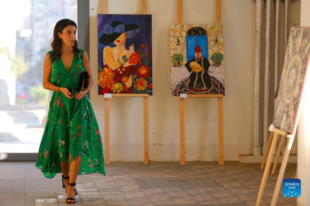 A woman visits an art exhibition in Beirut, Lebanon, on Sept. 8, 2021. (Xinhua/Bilal Jawich)