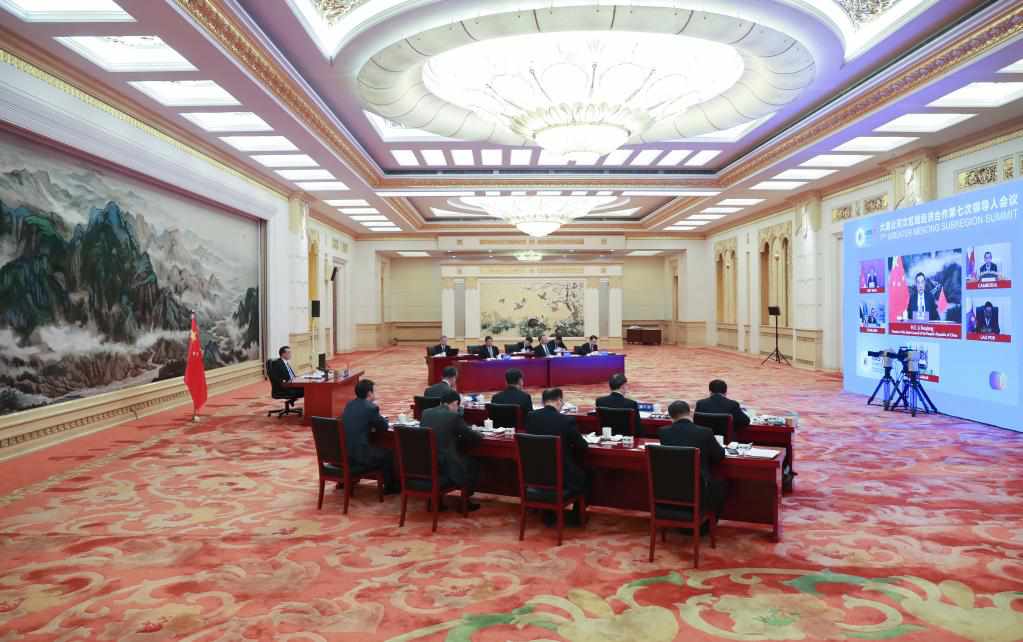 Chinese Premier Li Keqiang attends the seventh summit of the Greater Mekong Subregion (GMS) Economic Cooperation via video link, at the Great Hall of the People in Beijing, capital of China, Sept. 9, 2021. (Xinhua/Ding Lin)