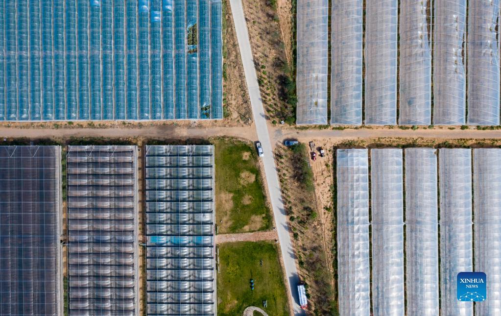Aerial photo taken on Sept. 8, 2021 shows a cantaloupe farm in Lingwu, northwest China's Ningxia Hui Autonomous Region. (Xinhua/Yang Zhisen)