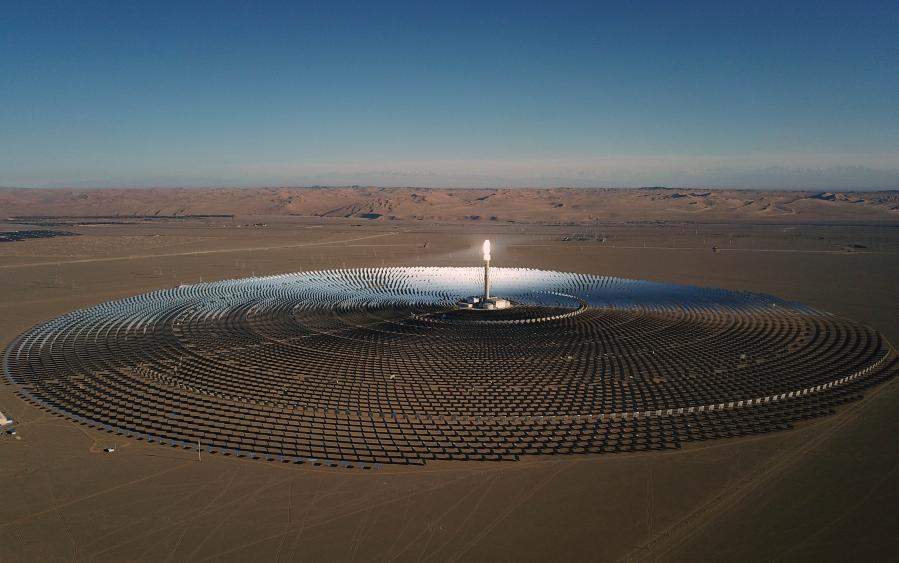 Aerial photo taken on Oct. 23, 2019 shows heliostats of a molten-salt solar thermal power plant in Dunhuang, northwest China's Gansu Province. (Xinhua/Ma Ning)