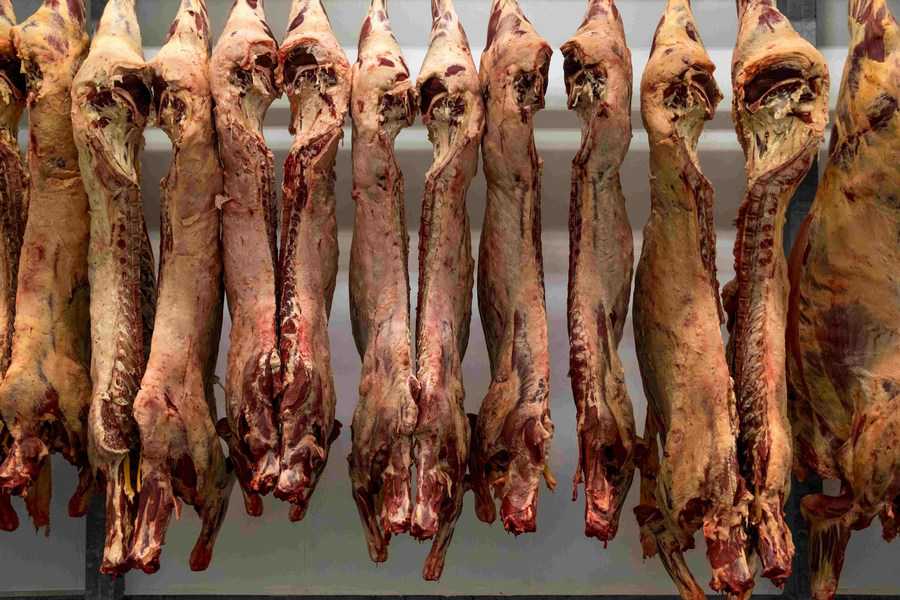 Pictured are beef carcasses refrigerated at Namibia's meat processing and marketing entity, Meatco, on Sept. 9, 2021, in Windhoek, capital of Namibia. (Xinhua/Musa C Kaseke)