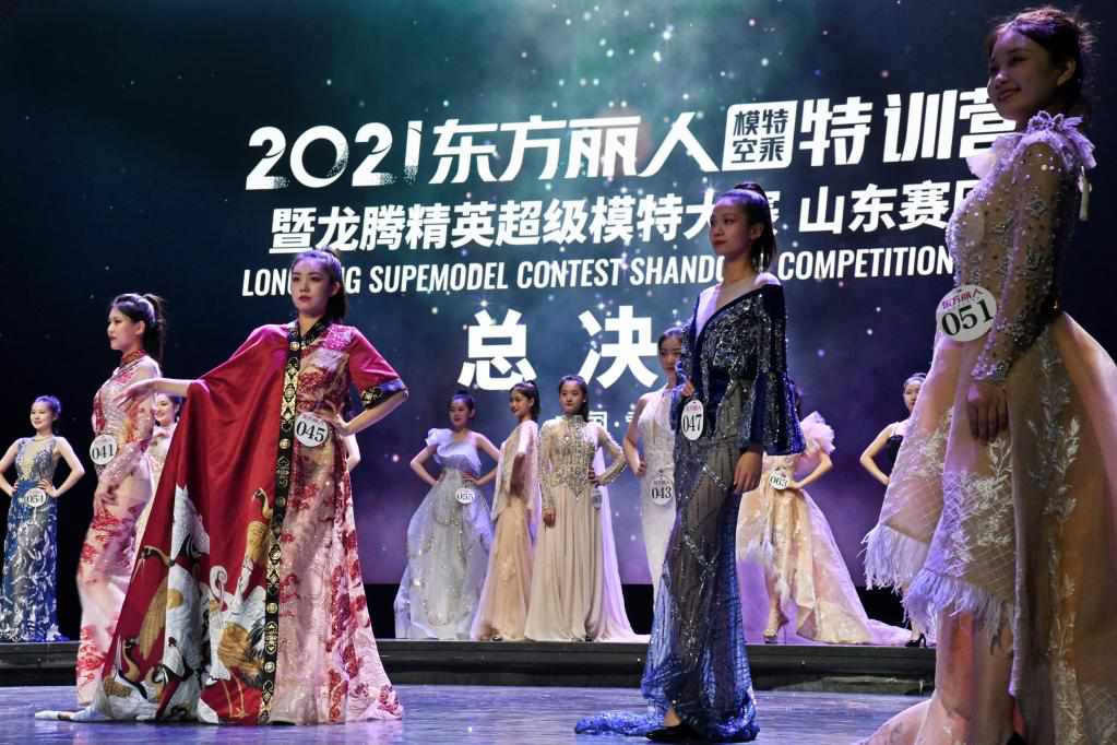 Contestants showcase gowns at the Longteng Supermodel Contest Shandong competition area in Qingdao, east China's Shandong Province, Sept. 11, 2021. (Xinhua/Li Ziheng)