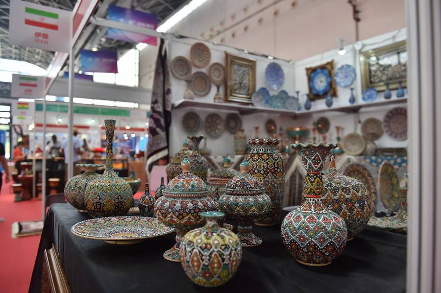 Photo taken on Sept. 11, 2021 shows Iranian artworks at the 18th China-ASEAN Expo in Nanning, capital of south China's Guangxi Zhuang Autonomous Region. (Xinhua/Liu Lingyi)
