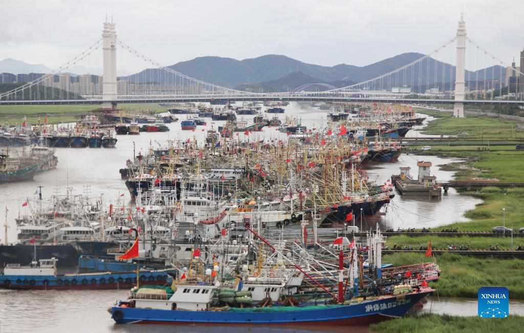 Fishing boats dock at Shenjiamen fishing port in Zhoushan, east China's Zhejiang Province, Sept. 12, 2021. East China's Zhejiang Province and Shanghai have issued alerts for Typhoon Chanthu, which is expected to make landfall on Zhejiang's coastal areas Monday. (Photo by Chen Yongjian/Xinhua)