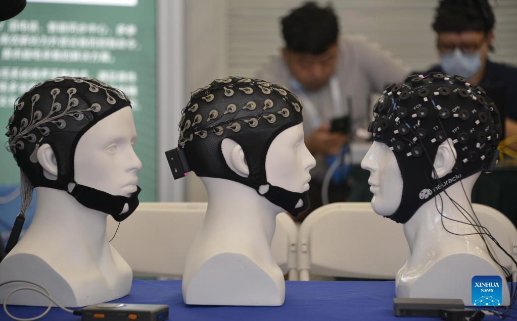 Photo taken on Sept. 12, 2021 shows an intelligent device displayed at the World Robot Conference held in Beijing, capital of China. The 2021 World Robot Conference is held in Beijing from Sept. 10 to 13. More than 110 enterprises and scientific research institutions brought over 500 products to the exhibition. (Xinhua/Li Xin)
