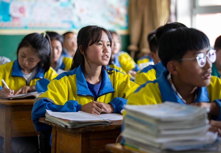 Students study at Tongxin No. 3 Middle School in Yuwang Township of Tongxin County, northwest China's Ningxia Hui Autonomous Region, June 21, 2021. (Xinhua/Yang Zhisen)