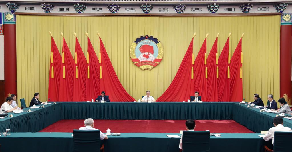 Wang Yang, a member of the Standing Committee of the Political Bureau of the Communist Party of China Central Committee and chairman of the National Committee of the Chinese People's Political Consultative Conference (CPPCC), presides over a meeting of the Chairpersons' Council of the CPPCC National Committee in Beijing, capital of China, Sept. 13, 2021. (Xinhua/Yao Dawei)