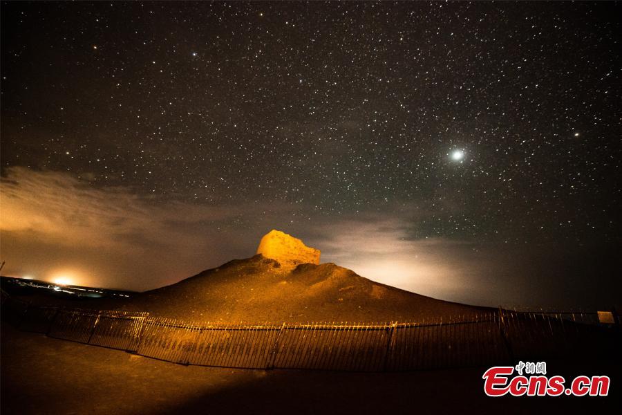 Starry night adds charm to Yangguan Pass in NW China's Gansu (6)