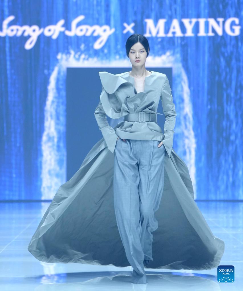 A model presents creations by designer Ma Ying at the closing show of the China Fashion Week in Beijing, capital of China, Sept. 13, 2021. (Xinhua/Chen Jianli)
