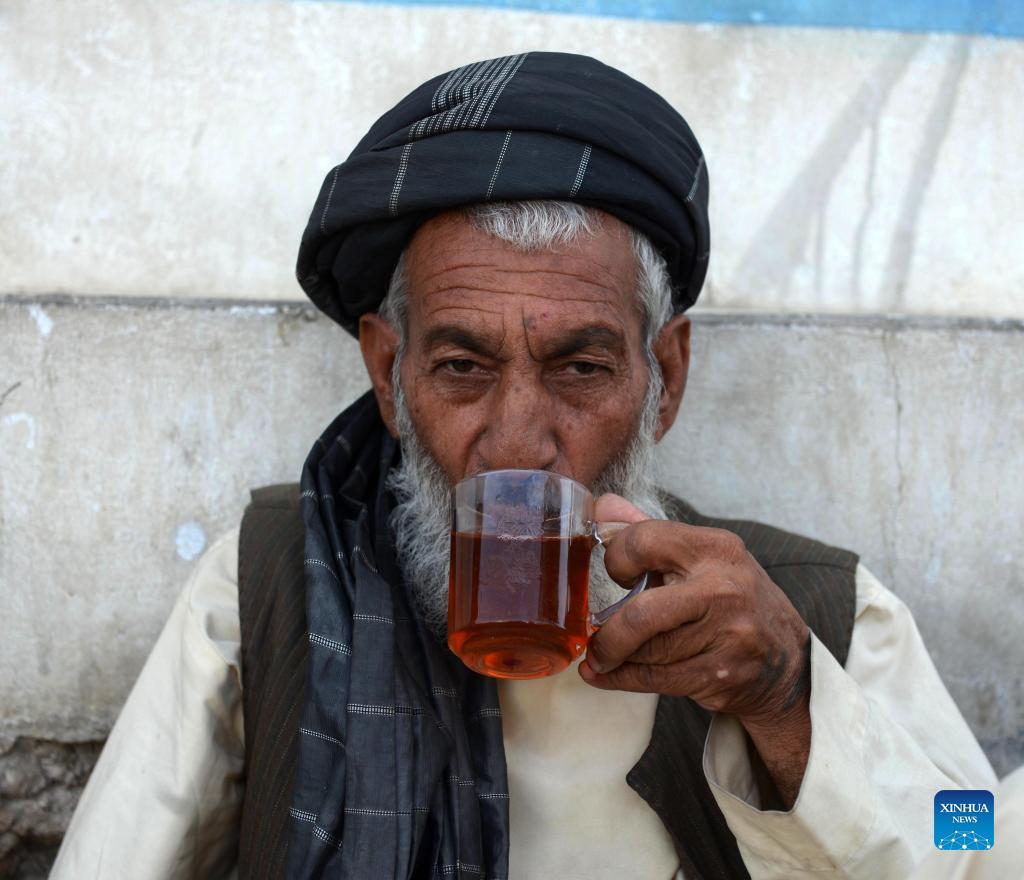 An Afghan man drinks tea in Kandahar city, southern Afghanistan, Sept. 14, 2021. (Photo by Sanaullah Seiam/Xinhua)