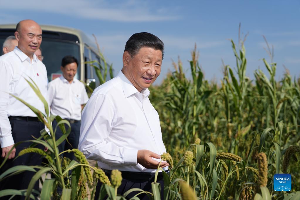 Chinese President Xi Jinping, also general secretary of the Communist Party of China Central Committee and chairman of the Central Military Commission, visits Gaoxigou Village in Mizhi County, during his inspection tour of Yulin City in northwest China's Shaanxi Province, Sept. 13, 2021. (Xinhua/Li Xueren)