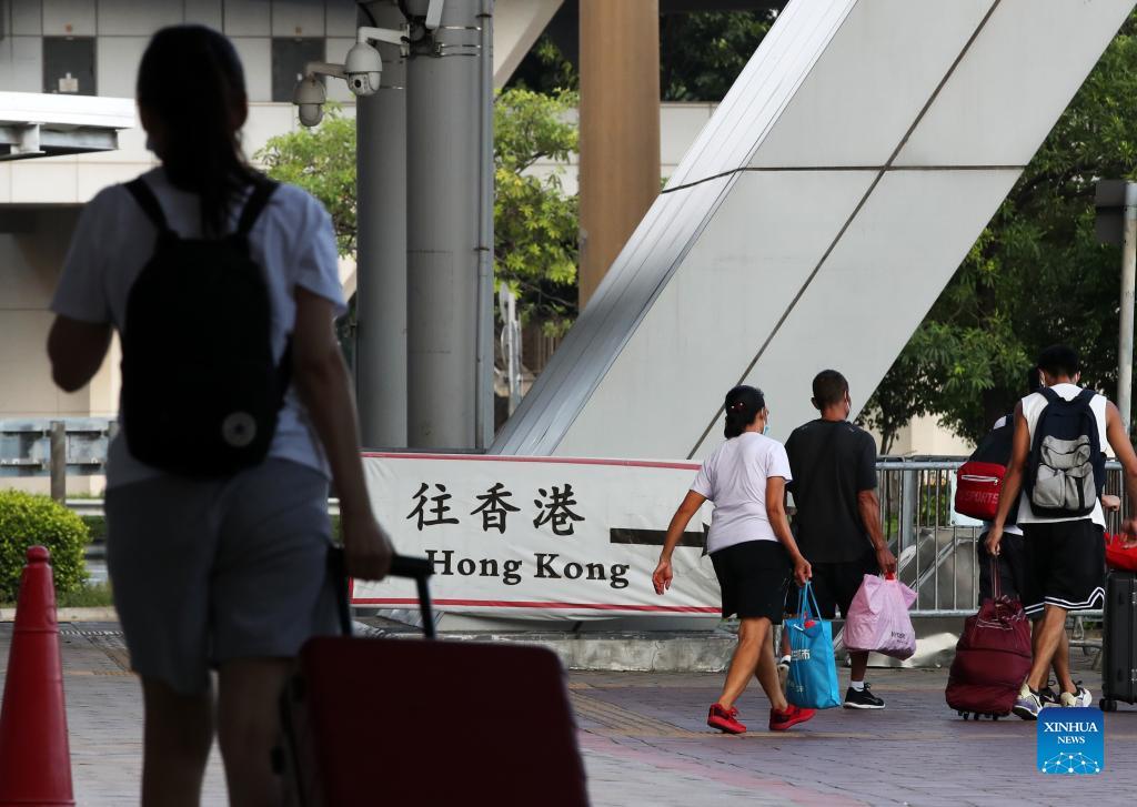 Passengers enter south China's Hong Kong from Shenzhen in south China's Guangdong Province on Sept. 15, 2021. A travel scheme, which allows non-Hong Kong residents from the mainland and the Macao Special Administrative Region to be exempted from the compulsory quarantine upon arrival, took effect on Wednesday. (Xinhua/Li Gang)