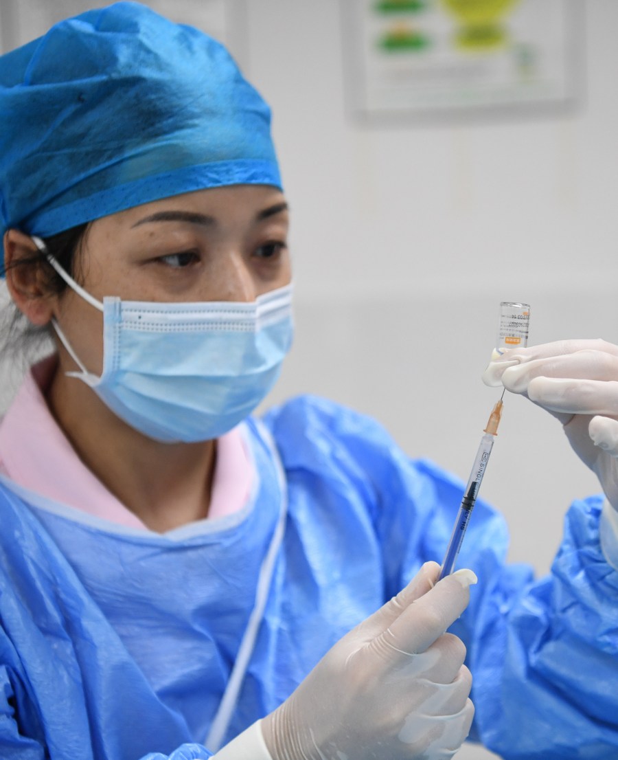 A medical worker prepares a dose of COVID-19 vaccine at a hospital in Yuexiu District of Guangzhou, south China's Guangdong Province, April 15, 2021.(Xinhua/Deng Hua)
