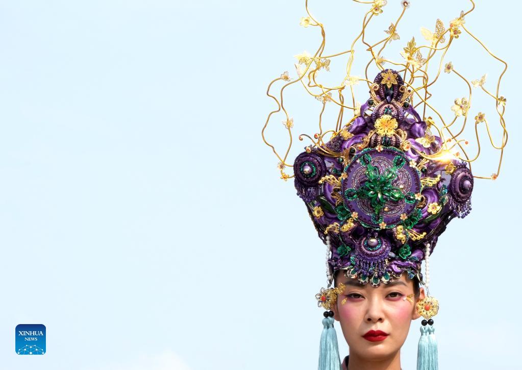 A model presents a creation designed by Zhang Yichao during the Beijing Fashion Week in Beijing, capital of China, Sept. 15, 2021. The 12-day event kicked off in Beijing on Wednesday. (Xinhua/Chen Jianli)