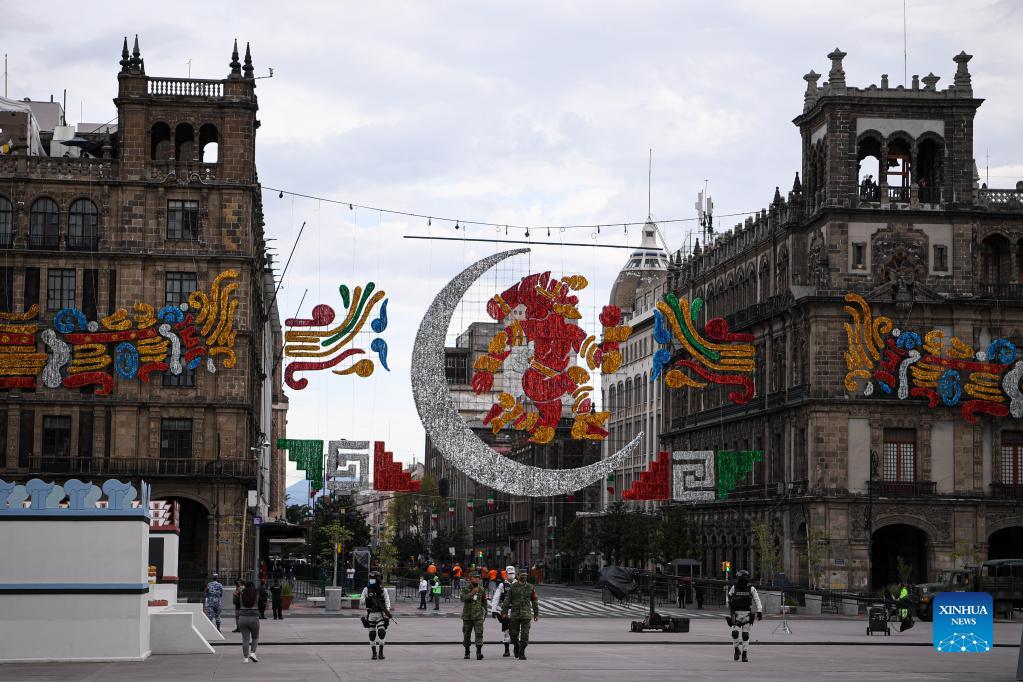 Photo taken on Sept. 15, 2021 shows a view of the Zocalo Square before the upcoming celebrations of the Mexican Independence Day, in Mexico City, capital of Mexico. (Xinhua/Xin Yuewei)