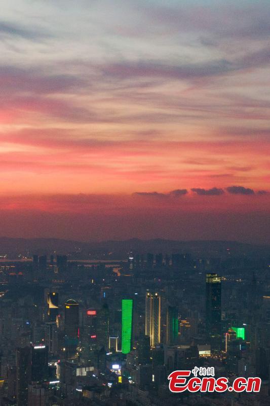 Stunning sunset glow turns the sky into a shade of pink and orange in Nanjing, capital of east China's Jiangsu Province, September 15, 2021. (Photo: China News Service/Yang Bo)